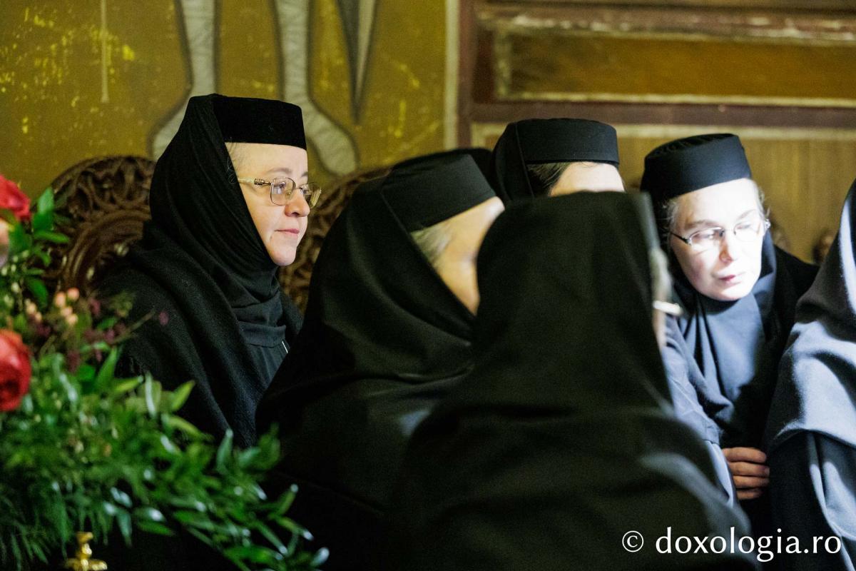 La slujba privegherii a slujit un sobor de preoți și diaconi sub protia părintelui arhimandrit Elisei Nedescu, starețul Mănăstirii „Sfinții Trei Ierarhi” din Iași, iar răspunsurile liturgice au fost date de Corul preoțesc „Apostolii” (în strana dreaptă) și, respectiv, de corul mănăstirii Copou (în strana stângă).